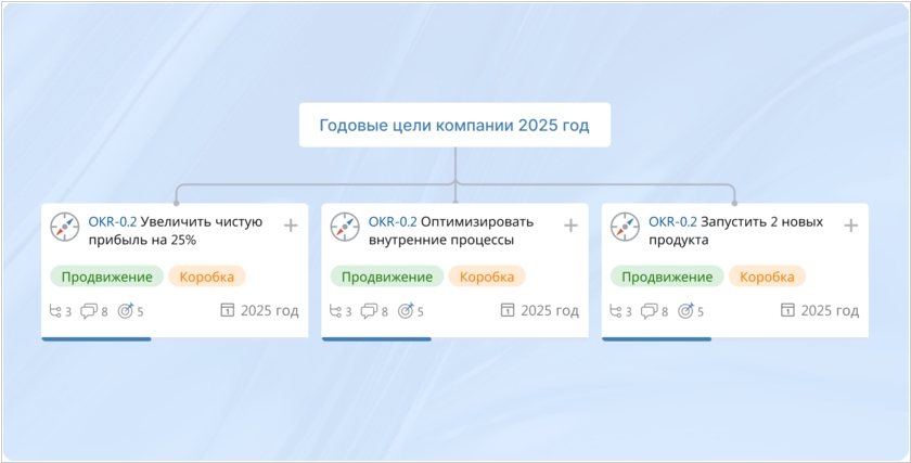 Компания Directum представила новый продукт для планирования и контроля выполнения стратегических задач — Directum Targets. Система поможет крупному бизнесу достигать стратегических целей за счет готовых механизмов планирования, каскадирования целей и задач на все уровни менеджмента и контроля их достижения. Для наглядности карта целей представлена в виде дерева — так проще увидеть, как каскадировались стратегические цели, поддержаны ли они целями подразделений, и отследить прогресс их достижения. При разработке системы учитывались работающие практики управления: в «коробку» Directum Targets встроены наиболее популярные методологии — OKR, MBO и BSC.