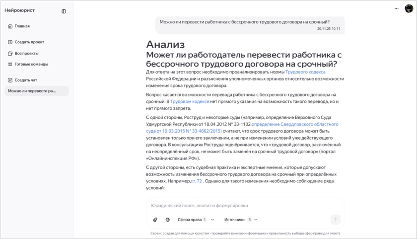 Яндекс представил ИИ-ассистента для юристов Нейроюрист основанный на языковой модели Alice AI LLM. Продукт предназначен для автоматизации работы юридических департаментов в части составления договоров, оценки законности рекламных кампаний, ответов на претензии и пр. Нейроюрист подключается к справочно-правовой базе "Гарант" (подписку на которую нужно оплатить отдельно) и отвечает на вопросы с пониманием юридического контекста. Например, он правильно расставляет приоритеты - решение Верховного суда имеет приоритет над единичным решением арбитражного суда и т.д. В ответе чат дает ссылки на использованные документы и цитаты. Также, он позволяет загружать собственные PDF документы (договора) для проверки и аудиозаписи для транскрибации и юридического анализа разговоров.