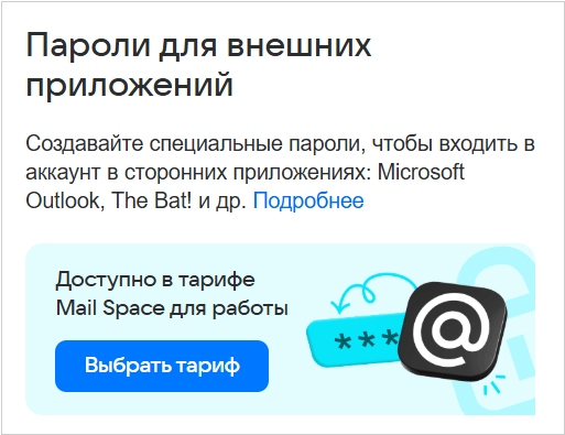 Компания VK, которая так благородно разрешает всем бесплатно пользоваться свои мессенджером Мах, ввела оплату за подключение почтовых клиентов (таких как Outlook, The Bat, Thunderbird) к почтовому сервису Mail.ru. Чтобы продолжить пользоваться этой функцией - придется платить от 299 руб/мес на одном из тарифов Mail Space. Это довольно уникальный случай для мирового рынка email сервисов, но видимо, компании как-то нужно компенсировать свои убытки. А если пользователи не будут платить - видимо, следующим шагом будет блокировка всех конкурирующих email сервисов.