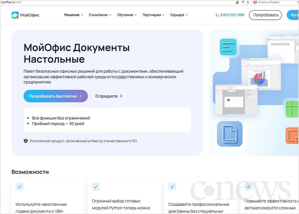 МойОфис запустил бесплатный тариф без каких-либо ограничений по времени. Он распространяется исключительно на частных пользователей и недоступен компаниям. Раньше бесплатной была только 30-дневная пробная версия. Базовая функциональность, доступная в новом тарифе, позволяет решать основные пользовательские задачи: работа с текстом, таблицами и презентациями как на компьютере, так и на мобильных устройствах (iOS и Android). При этом для тех, кому требуются профессиональные инструменты (макросы, сводные таблицы, расширенное рецензирование), сохраняется подписка с полным набором возможностей. Отметим, что главный конкурент МойОфис - Р7 офис - бесплатную версию не предоставляет.