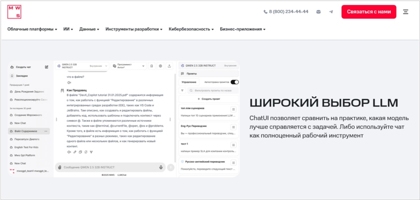 Раньше считалось, что хоть мы и закупаем все товары из Китая, но уж программное обеспечение мы то лучше делаем. Но до сих пор российское ПО практически не используется в Китае, а вот китайское - нашло путь на российский рынок. Облачная платформа МТС Web Services провела более 500 пилотных проектов по внедрению больших языковых моделей в крупнейших российских компаниях. И оказалось, что самыми популярными в топ-10 моделей стали открытые LLM из Китая (в основном, конечно речь о Deepseek). На втором месте открытые модели из США (в основном Llama), третье место по использованию заняли собственные большие языковые модели MWS, такие как такие как Cotype. Чаще всего реализуются проекты по внедрению LLM в различного рода чат-боты, которые иногда интегрированы с внешними источниками информации.