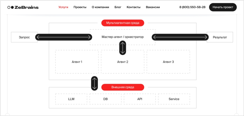 Пока вы думаете, можно ли создать одного ИИ агента для вашего бизнеса, компания ZeBrains уже выпустила систему управления ИИ агентами. Цифровой офис ZeBrains AI - это оркестратор, который позволяет создавать множество ИИ агентов с помощью формулировки заданий на естественном языке, выстраивает план действий и координирует работу агентов. Каждый агент отвечает за свою задачу, например, обработку почты и документов, работу с таблицами, поиск информации, транскрибацию аудио и другие операции. Каталог готовых сценариев охватывает HR-контур (анализ кандидатов, eNPS), финансы (контроль задолжности, прогнозирование выручки), юриспруденцию (проверка договоров), продажи (разработка коммерческих предложений, работа c CRM), маркетинг (конкурентный анализ) и первую линию поддержки (обработка тикетов). Решение поддерживает подключение внешних и корпоративных LLM-моделей. Стоимость начинается от 30 тыс рублей в месяц.