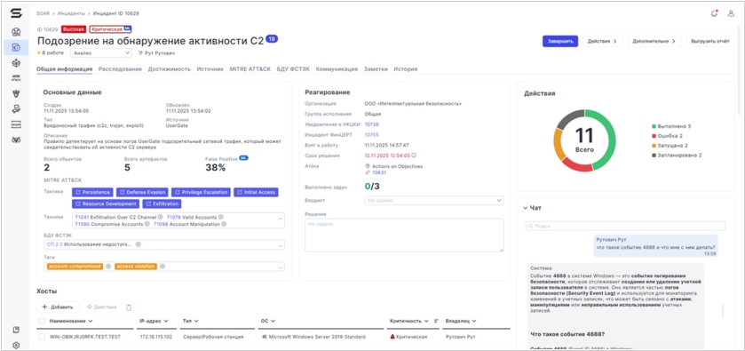 Security Vision выпустила обновление своей SOAR системы для управления и автоматизации обработки инцидентов информационной безопасности. В ней появился ИИ-ассистент в формате чат-бота, обученный на лучших мировых практиках реагирования на инциденты, документации по продукту и практических справочных данных по администрированию и информационной безопасности. Модель отвечает на вопросы с учётом контекста конкретного инцидента: его фазы, связанных объектов, истории действий по нему, истории обработки похожих кейсов и связанных бюллетеней, помогая аналитикам быстрее интерпретировать события и принимать решения. Модель обучается в процессе использования в SOC на результатах обработки инцидентов, а также на бюллетенях, выпускаемых экспертном сообществом или отдельными аналитическими центрами. Дообучение модели выполняется полностью в контуре заказчика.