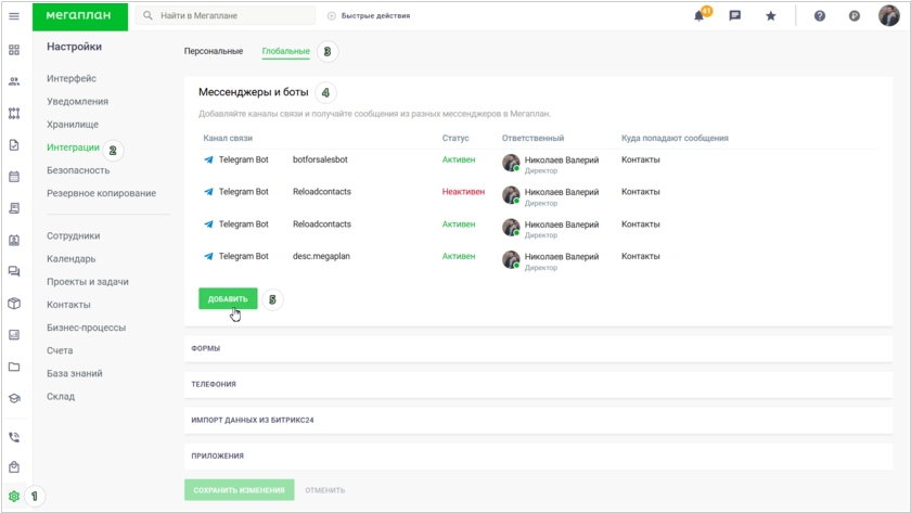 Мегаплан добавил возможность получать уведомления о событиях в системе, или информировать сотрудников и клиентов в привычном месте - в мессенджере Telegram. Настройка довольно несложная: достаточно создать бота и указать, кому когда и о чём он будет сообщать. Например, сотруднику он покажет список его задач и сделок, с описаниями, данными и ссылкой на Мегаплан. А клиент через бота быстро узнает информацию о заказе или получит ответ на другой вопрос - без обращения в компанию. Также Телеграм-боты могут упростить получение справочной информации: в любое время они ответят на запросы и оповестят об изменениях.