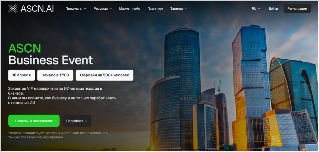 16 апреля в Москве пройдет закрытое мероприятие по AI-автоматизации бизнеса - ASCN Business Event. На одной площадке соберутся предприниматели, автоматизаторы, специалисты и команды, которые внедряют AI-агентов и автоматизацию бизнес-процессов.