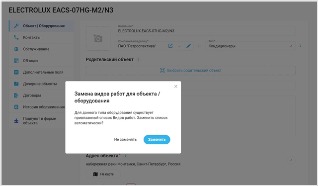 Настраивать виды работ для типов оборудования в Hubex стало проще. Теперь пользователь задаёт виды работ один раз, и они автоматически подтягиваются ко всем новым объектам этого типа при создании.Пользователям доступен удобный интерфейс: боковое окно для редактирования типов оборудования, множественный выбор видов работ, наглядное отображение выбранных параметров, умные подсказки при изменении настроек. Расширение автоматизации процессов: автозаполнение видов работ при создании объектов и интеллектуальные уведомления при изменении типа оборудования. При этом сохраняется возможность ручного переопределения при необходимости.Что это значит для пользователей на практике: меньше ручных действий — не нужно настраивать виды работ для каждого объекта, единый порядок в данных — одинаковые настройки для всех объектов одного типа, меньше ошибок — система сама применяет правильные виды работ.