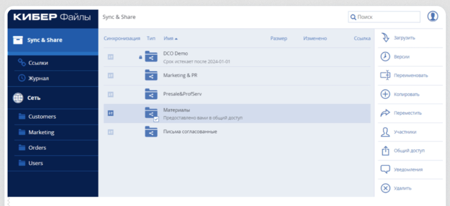 10.03.26. В Кибер Файлах улучшен интерфейс корпоративных папок